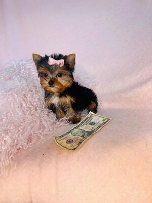 Beautiful Female Yorkie with her vaccines up to date and microchip. 786-591-9853...