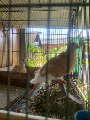 Some males and female ringneck doves very tammed, cinnamon, and white . Tortolas de collar muy mans...