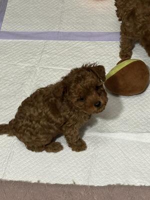Only 1 female toy poodle Available Dark red toy poodle Mom 5.5lbs and dad 4 lbs She has 11 weeks...