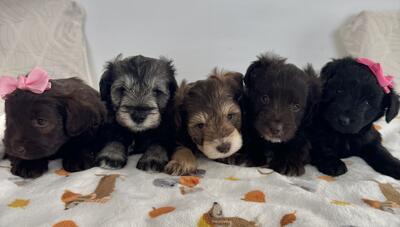 We have 5 beautiful Miniature Schnauzer puppies, currently 1 month old, and getting ready for their ...