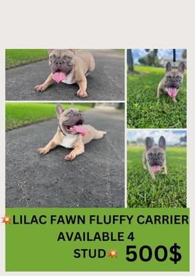 Frenchie stud available lilac fawn carrying fluffy 500 for a limited time. Open for pup backs also A...