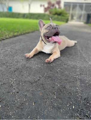 Lilac fawn French bulldog stud service frenchie stud service from full fluffy,fluffy carriers, big r...