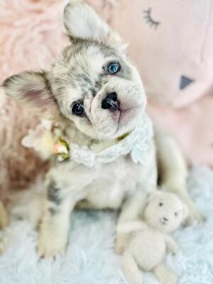 AKC white/tan pied Frenchie, 1 year 4 months old. Very sweet, lovable, playful, dog friendly( curren...