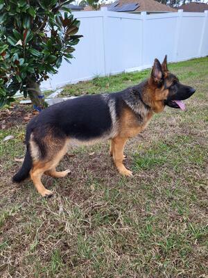 One year pink paper German imported male German Shepherd puppy from the famous Kuckucksland kennel w...