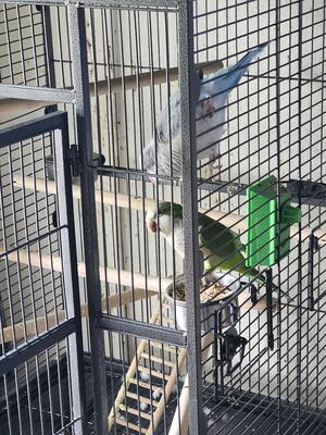 1 opaline blue quaker 1 green Quaker ***Will sell birds separately *** 1 LARGE cage 1 small tra...