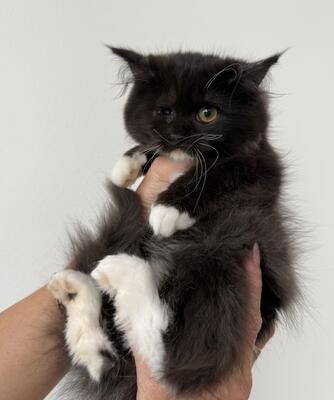 Kitten for rehoming. He is a British Longhair Black & White Male. Friendly and easy going. Gets alon...