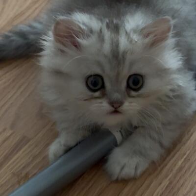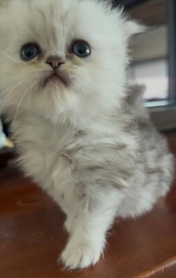 Looking for a loving, cat-friendly family for stunning silver-shaded female Persian Chinchilla kitte...
