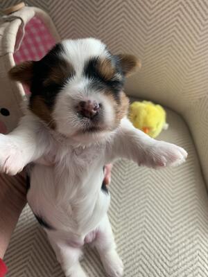 I have a small breeding business and this is one of my male tri colored yorkies. German /traditiona...