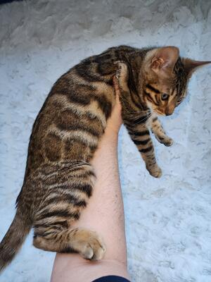 Beautiful brown rosetted male bengal kitten for sale. 14 Weeks old and ready to go home! Extrem...