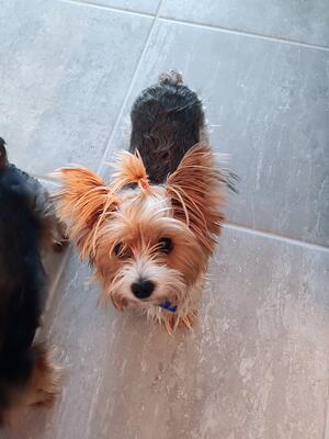 Hello! I have a 4 year old girl Yorkie. She is a partie Yorkie so she has some white hair on her fac...