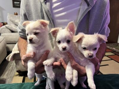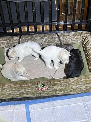 We have 4 puppies available 11/23 3 female and 1 male 2 females are white 1 female black 1 m...