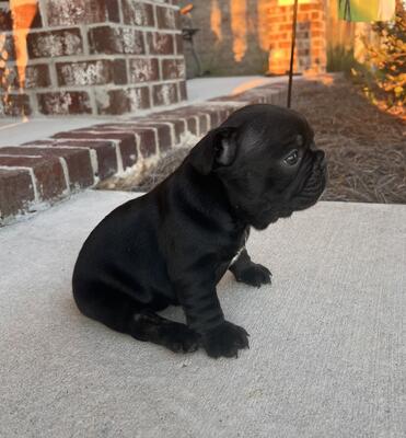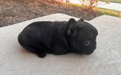 Meet this adorable female French Bulldog puppy! She features a rich black coat with a charming white...