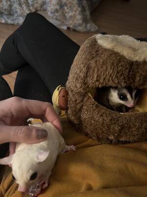 Looking to rehome a colony of 3 sugar gliders. 1 Neutered male (age unknown) 1 Female (age unknown...