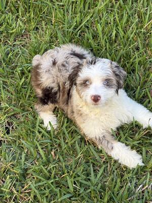 Mini Aussiedoodle- 4 months old. Female. Tri color. Needing to rehome as our other dog is not gettin...