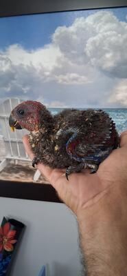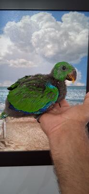 Handfeeding sweet male eclectus baby. Baby will be weaned onto Zupreem natural pellets and mixed veg...