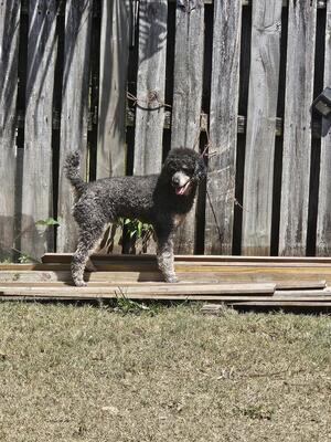 Akc proven male phantom moyen poodle. Genetically tested, sweet disposition, Picture of his daughte...