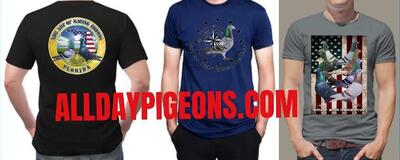 Racing Pigeons Tshirts different sizes and models Go to www alldaypigeons.com...