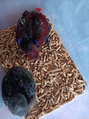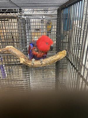 Baby Eclectus male or female. They're approximately 6 to 7 weeks old. They're being hand-fed 3 to 4 ...