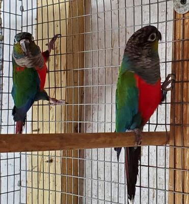 Different colors of green cheek conure babies for handfeeding starting at 250$, otherwise starting a...