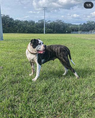 I am rehoming my male American bulldog he is 3 years old playful and good with other dogs. He is re...
