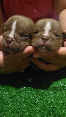 I have 5 pups available off these 2 beautiful bulls mom is a champagne merle dad is a chocolate faw...