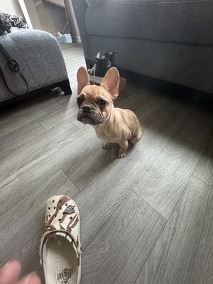 Female frenchie in of forever home. Super active pup. Approximately 18/22lbs of lean athleticism. Te...