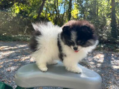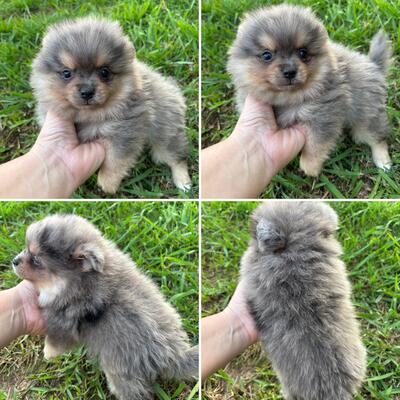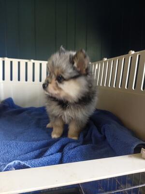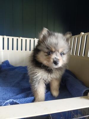 Pomeranian puppy blue Merle male left ready for new home comes with first shots and health exam pape...