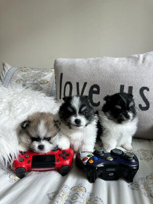 Pomeranian puppies 3 females 1 male ready for new homes comes with first shots and health exam paper...