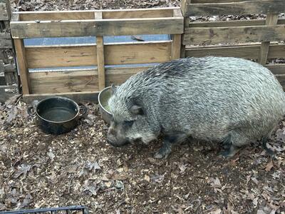 I have 2 adult pigs. Very friendly. Eat or breed. They are not related. The male is still intact for...