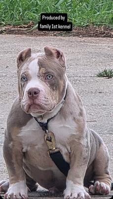 ABKC American Bully Merle pup very extreme solid build. We have 2 litters on the way so price is re...