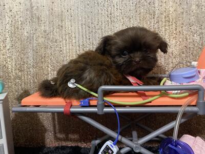 Two males three females. Puppies are raised inside our home. All shots are up to date. They are 6 we...