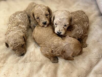 Meet Blue, our male goldendoodle 7 week old puppy. He's the heart of his litter and has the cutest e...