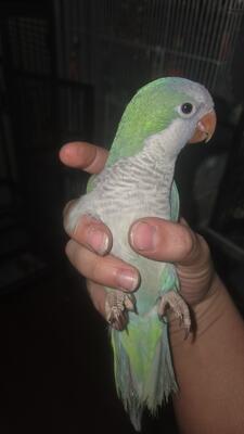 Quaker and cage. Handfed hatched 2025 located in lynchburg va text 706-567-2581...