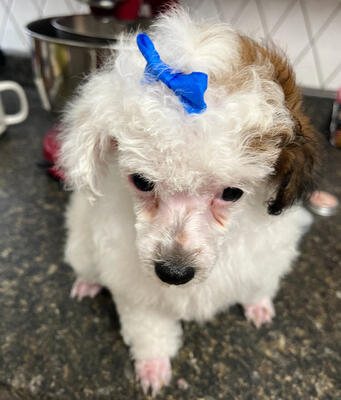 $1,000 Male Toy Poodle pup born April 19, 2025. Parti (white with chocolate). CKC registered, up to ...