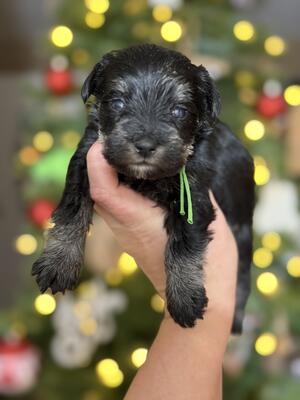 3 Mini Schnauzer boys - black/silver. One has one blue eye. Parents are 12 & 14 lbs. located in Pear...