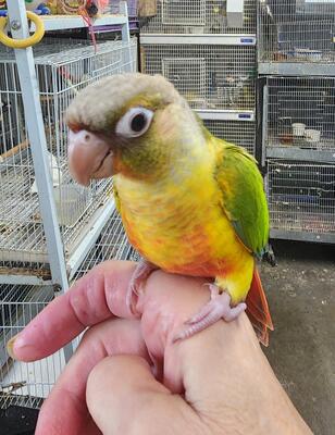 Recently weaned, handfed pineapple Green Cheek Conure. She has personality plus ...