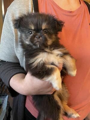 SMALL AND COMPACT, WITH TONS OF THICK RICH HAIR. CUTE MARKINGS CHARTS TO BE 5 LBS AS ADULT LICENSED...