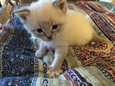 Ragamese Snowshoe (Rag Doll & Siamese Snowshoe) Kitten with 2 white front mittens and 2 long socks o...