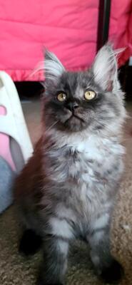 Sweet and stunning purebred Maine Coon kitten looking for her forever home. She is 6 months old, sp...