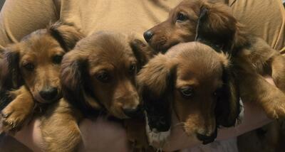 9 mini dachshund pups 2 female 7 males both long and short hair adorable spunky and cuddly 3 shaded ...