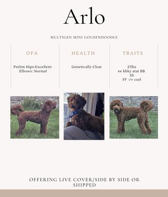 Arlo is a gorgeous Mini Goldendoodle stud with gorgeous wavy deep red plush coat. Arlo has a very la...