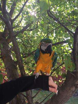 ADULT MACAW Blue and Gold Friendly and tamed. Will step up allow you to feed him cage included...