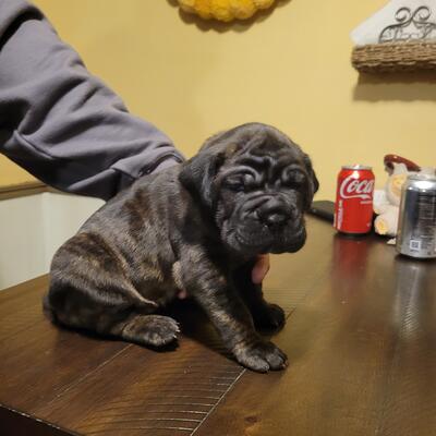 Hi I have a two year old American molasses mastiff name queenie she’s good with all animals male ...