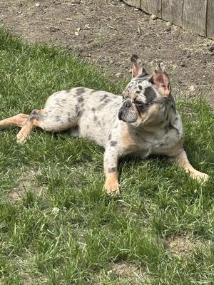 Meet Bane , the lovable AKC pied Merle French bulldog seeking his forever home! He’s vaccinated, d...