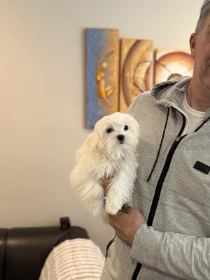 We have a beautiful female Maltese available for pick up. She is playful, yet calm and loves to cudd...