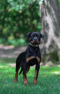 25% German Shepherd 25% Doberman 50% Long-haired Roman Rottweiler ...