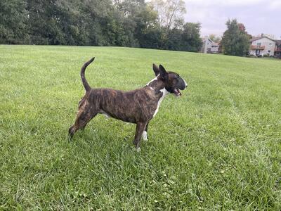 Chancho is 2 years old standard bullterrier, AKC registered, good with people and animals, sweet nat...