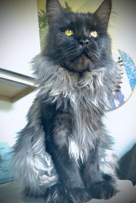 Purebred Maine Coon girl with a unique blue smoke bicolor coat. She is currently 10 weeks old and re...