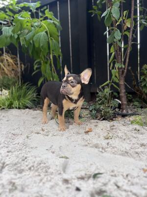 Meet our stunning Full Fluffy Frenchie male, born June 15, 2025! His coat is ultra-soft with rich t...