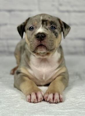 Blue Tri Merle XL American Bully puppy, 8 week old female ready to find her forever home. The sire i...